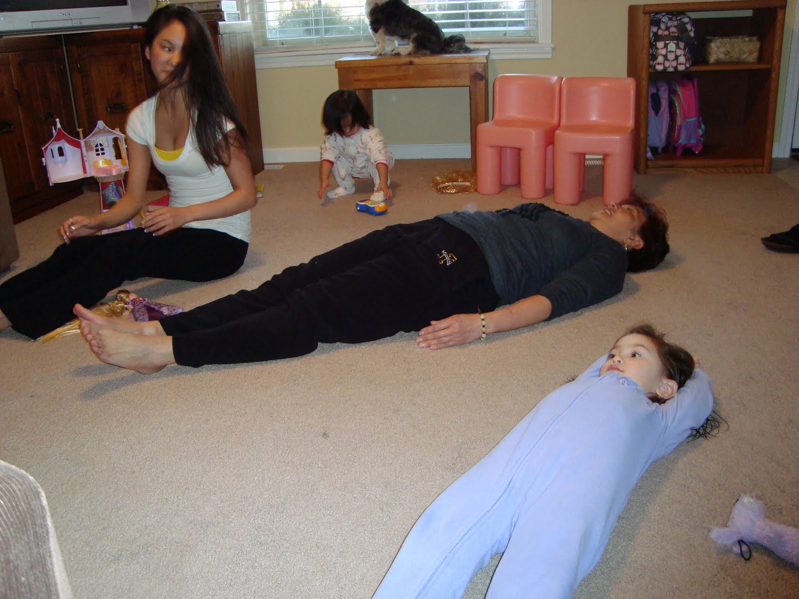 Kaila copying Grandma. I have no idea what "stretch" this is supposed to be